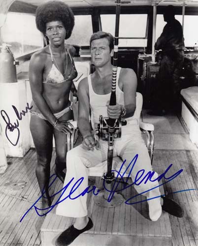 Sir Roger Moore & Gloria Hendry Cast Autograph, 8x10 bw shot