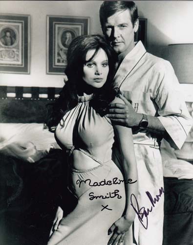 Sir Roger Moore & Madeline Smith Cast Autograph, 8x10 bw shot