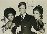 Roger Moore , Jane Seymour & Gloria Hendry Cast Autograph, 8x10 bw shot