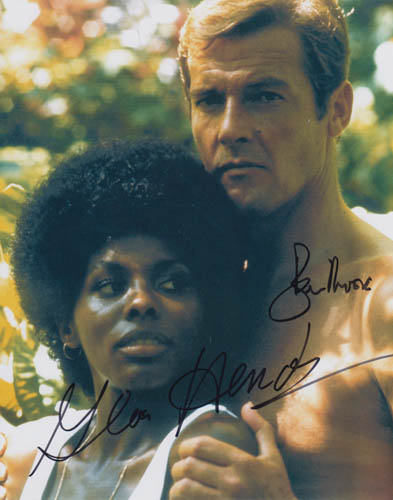Roger Moore & Gloria Hendry Cast Autograph, 8x10 color shot