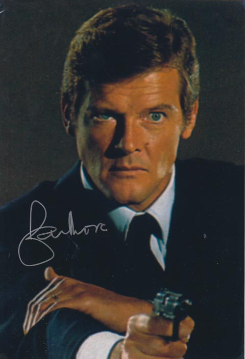 Roger Moore Autograph Official Signing, 8x10 color shot