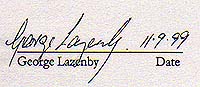 George Lazenby is a not easy to get signer. Trough the mail he doesn't answer any fan mail meanwhile. In-Person he is a good signer but he is not often seen in-person. So his autograph is tough! Sometimes he does signings on shows or private ones. Many fakes on the market especially in USA.